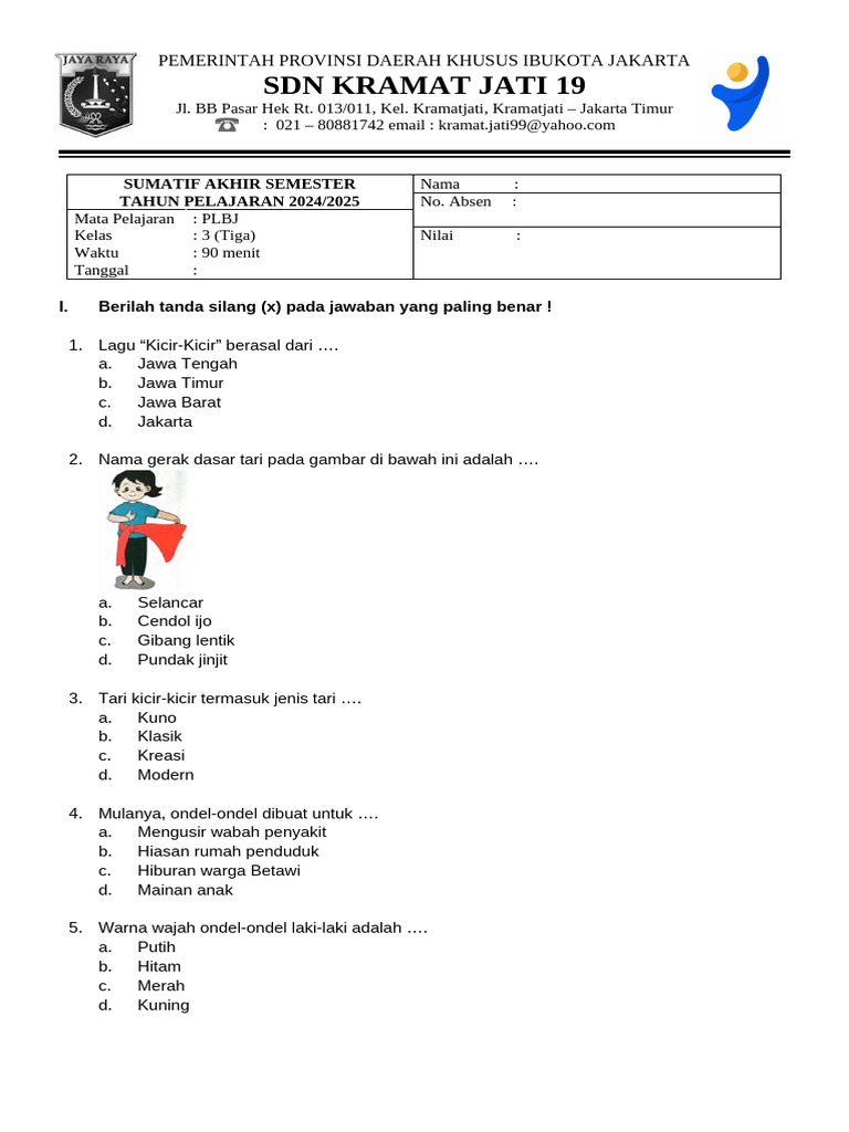 Pendidikan Lingkungan dan Budaya Jakarta (PLBJ) merupakan mata pelajaran yang sangat penting bagi siswa kelas 3 Sekolah Dasar. Materi yang diajarkan dalam PLBJ tidak hanya mengenalkan siswa pada kekayaan budaya dan lingkungan Jakarta, tetapi juga menanamkan nilai-nilai kearifan lokal, cinta tanah air, serta kepedulian terhadap lingkungan. Menjelang Ujian Kenaikan Kelas (UKK), para siswa tentu membutuhkan persiapan matang, termasuk memahami format dan jenis soal yang mungkin muncul.